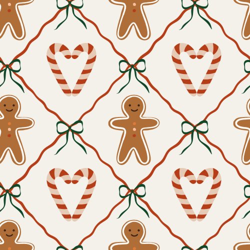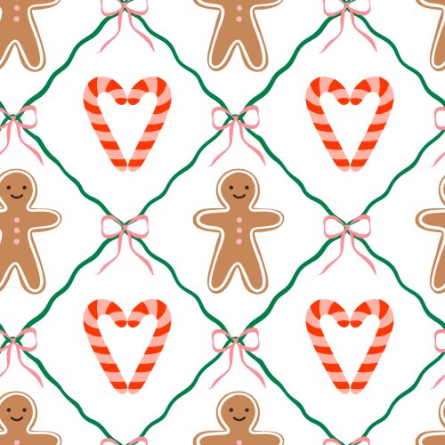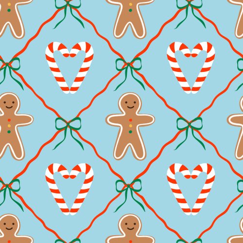 Christmas gingerbread cookies, bows, candy hearts on Custom Blanket
