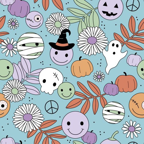 Funky Halloween Garden Blue on Custom Blanket