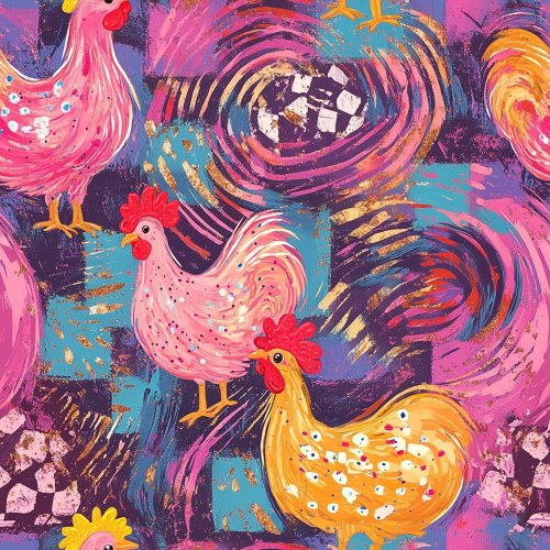 Checker Pink Swirl Chickens