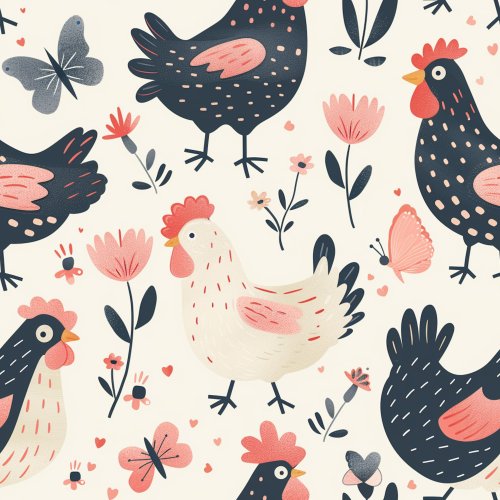 Dark Floral Chickens