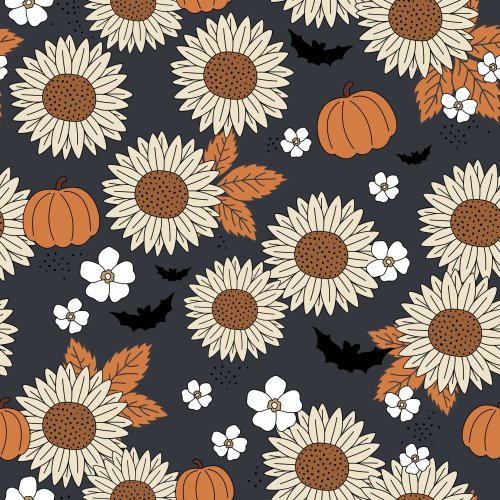 Pumpkin Patch Sunflowers with Bats Night
