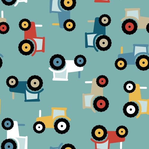 Primary Tractors on Turquoise