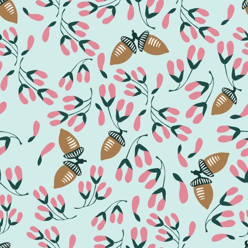 Acorns and Whirlygigs Blue on Custom Fabric
