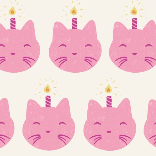 Birthday Cat Candles Cascade Teal on Custom Fabric