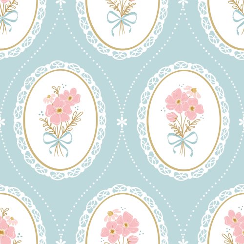 Blush and Bloom Cameos on Blue on Custom Fabric