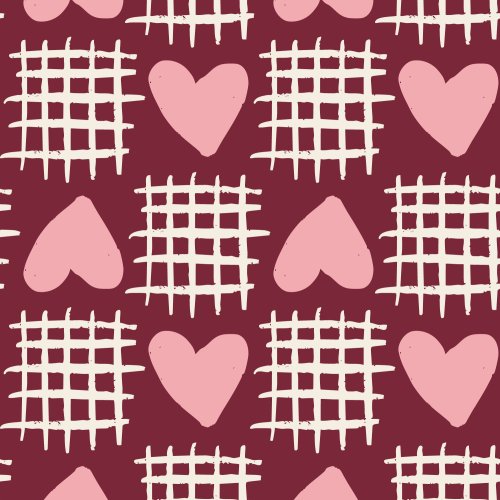 Checkered Hearts Red on Custom Fabric