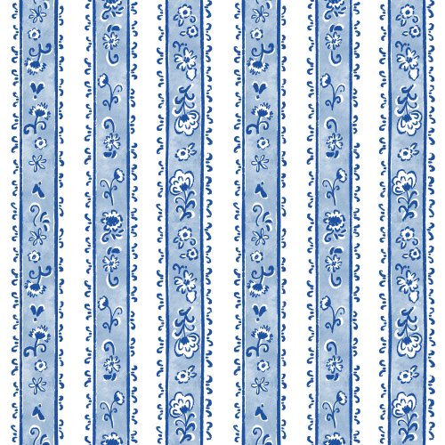 Chinoiserie watercolor floral stripe royal blue on Custom Fabric