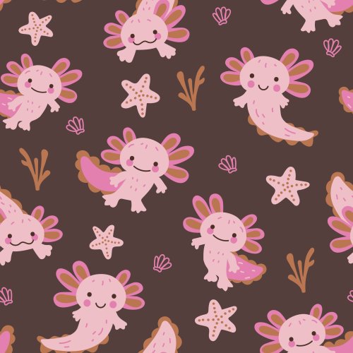 Cute Axolotl Brown on Custom Fabric