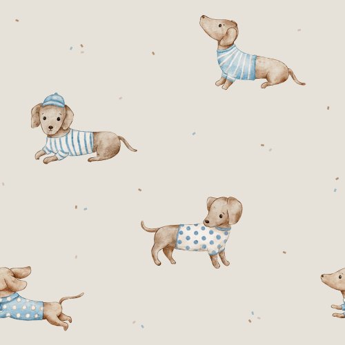 Dachshund with Blue Sweater in White on Custom Fabric