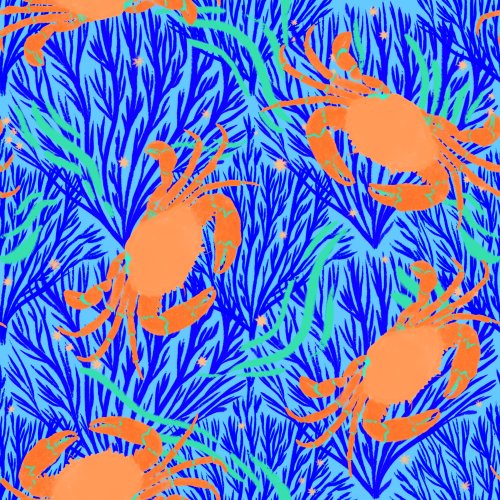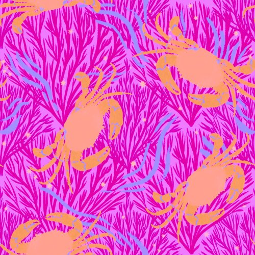 Feelin Crabby Dark Blue Pink on Custom Fabric