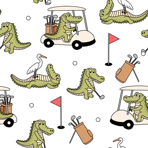 Golfing Gators on Blue on Custom Fabric