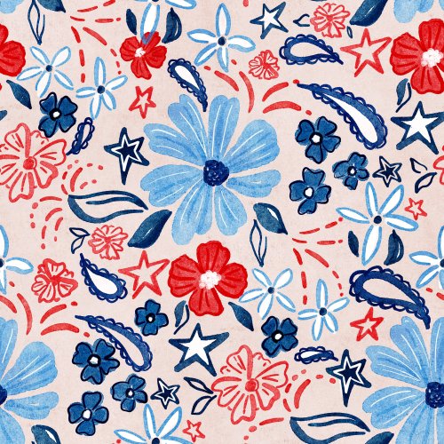 Patriotic Posies White on Custom Fabric