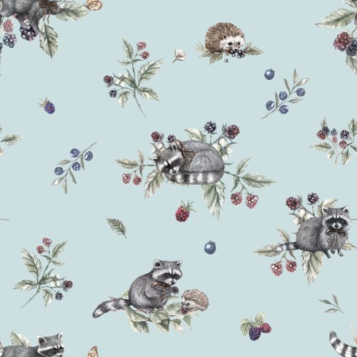 Racoon in Blue on Custom Fabric