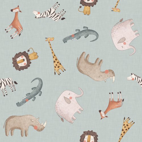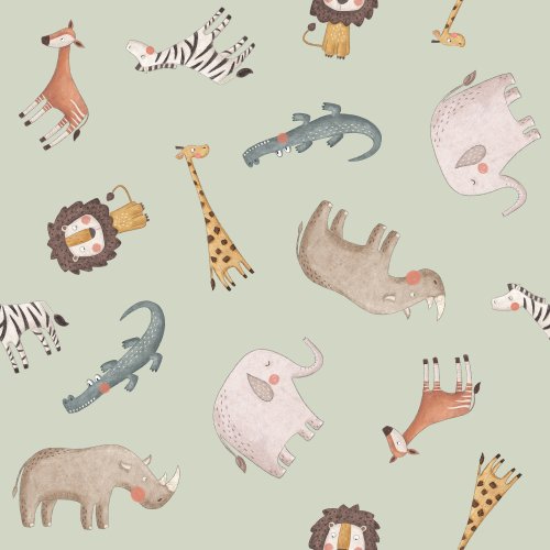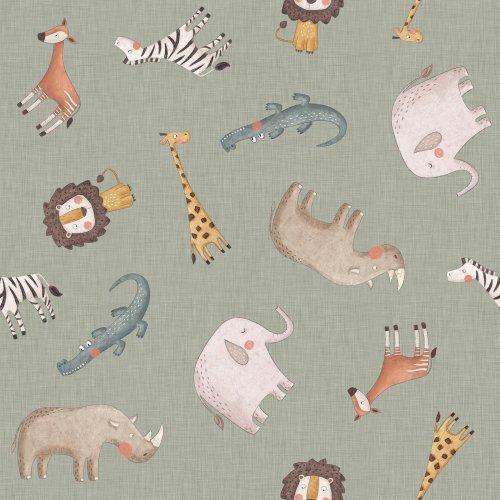 Safari Animals Tossed Sage on Custom Fabric