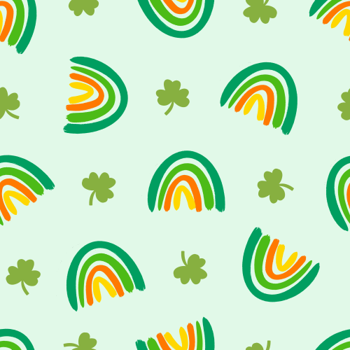 Saint Patrick's Day rainbows and clovers on light mint on Custom Fabric