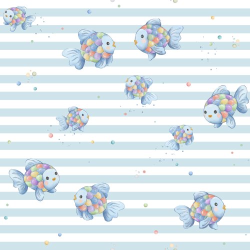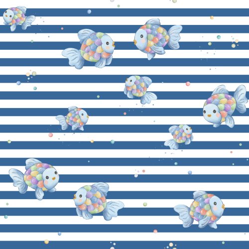 Sparkling Fish in Sky Stripes on Custom Fabric