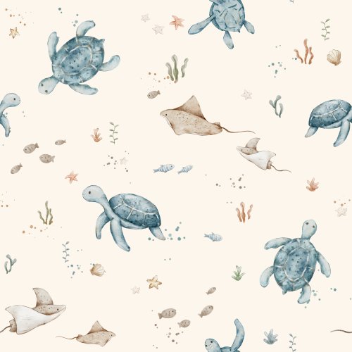 Turtle Land Blue in White on Custom Fabric