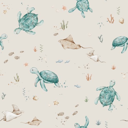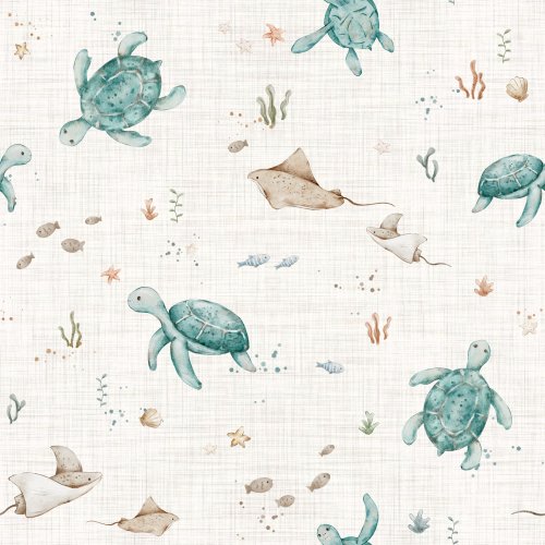 Turtle Land Green in Off White on Custom Fabric