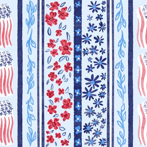 Usa floral flag stripe white on Custom Fabric