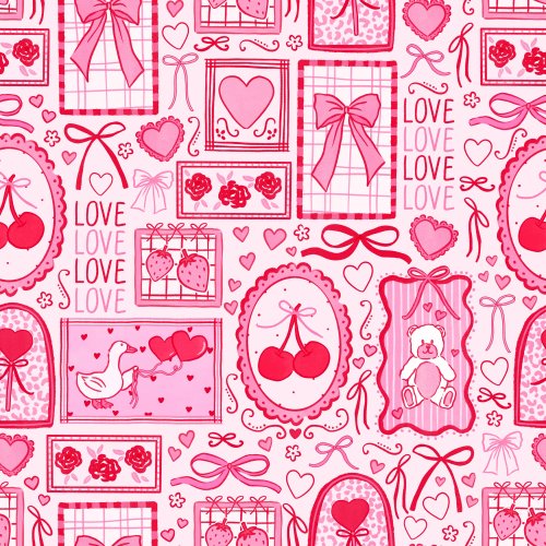 Watercolor Valentine Stamps on White on Custom Fabric