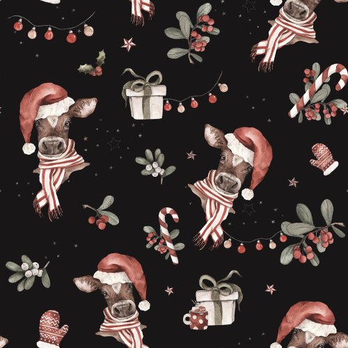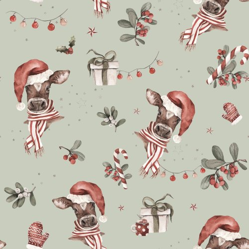 Christmas Cow Dusty Green Blue on Custom Pillow