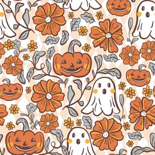 Earthy Muted Spooky Retro Pumpkin Ghosts Muted Orange on Custom Pillow