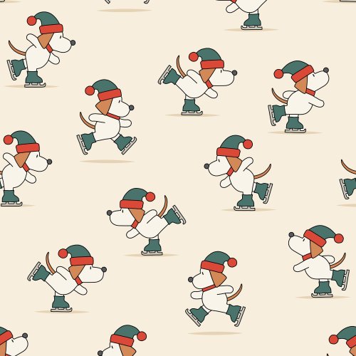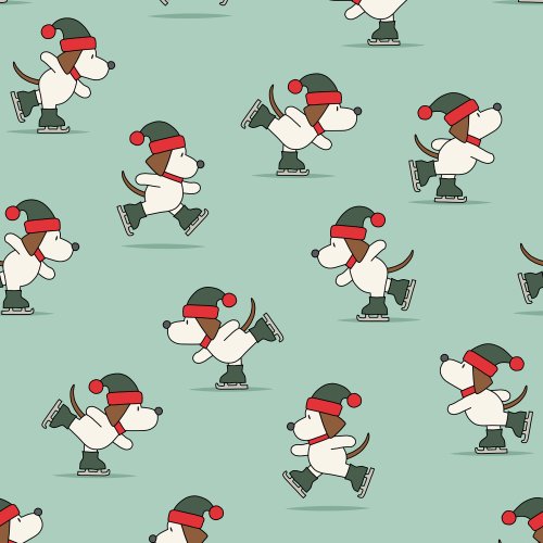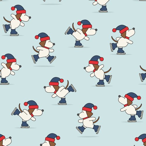 Iceskating Dogs Blue on Custom Pillow