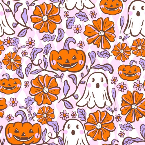 Spooky Retro Pumpkin Ghosts Bright Orange on Custom Pillow