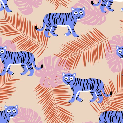 Monstera Tiger Blue on Custom Towel